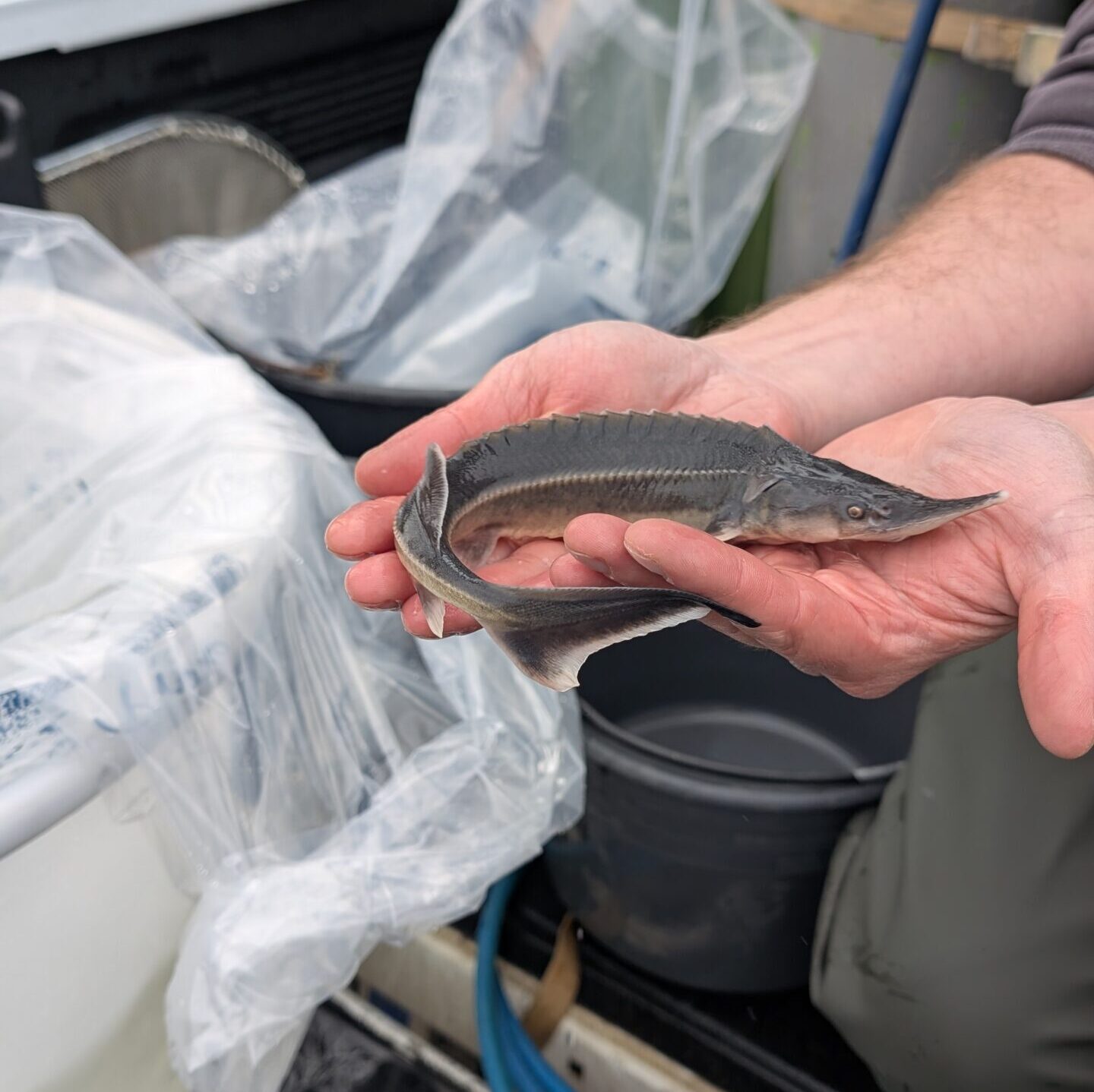 The sturgeons from the project are stocked in various sizes to maximize survival rates, starting at sizes below 1 cm. The last batch of the 2023 year class was released at the end of February with an average size of 25 cm, equipped with PIT and color tags.